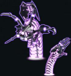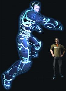 He was sent by fCon to try and steal the secret to the digitizing process from Alan. Not knowing about the correction algorithms, he decided to test the digitization process on himself. Without the algorithms, his pattern was corrupted upon entering the electronic world. He has gone insane and is using his abilities as a User to become a god-like figure, spreading his influence whenever possible.