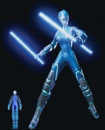 Mercury is a champion Light Cycle AI gamebot. Unlike most other similar types of game AI, she is very sophisticated and is capable of doing more than just playing in the games. However, defeating opponents on her Super Cycle is what she does best. Apparently, no opponent has ever beaten her.