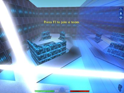 A level probably inspired by the Dataserver Hub (Block Arena) map in the original game. Players jump from block to block, while their opponents de-rezz the blocks in hopes that they fall. This level is still being worked on by the author, so there may be changes to it in the future.
