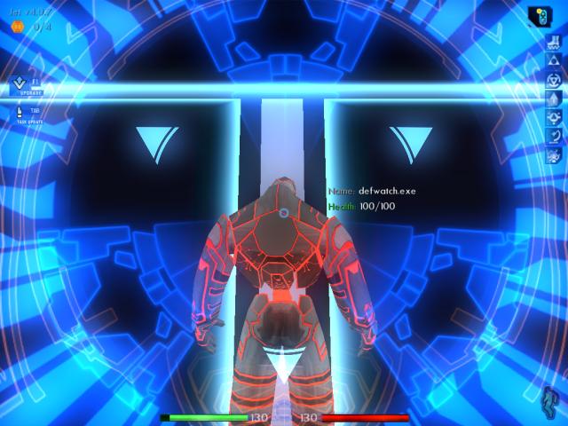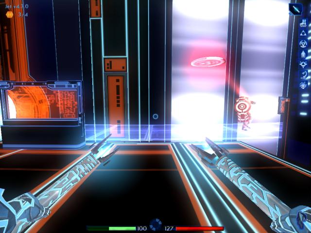 Move to the left, and seek some cover. The Sequencer ICPs should eventually step out from behind the shield, which will make them totally vulnerable to your disc. But if they don't, it doesn't matter. Throw your disc past the Shield ICP and the others, and keep holding down the left mouse button. Then as you recall it with the right button, guide the disc so it hits them from behind.