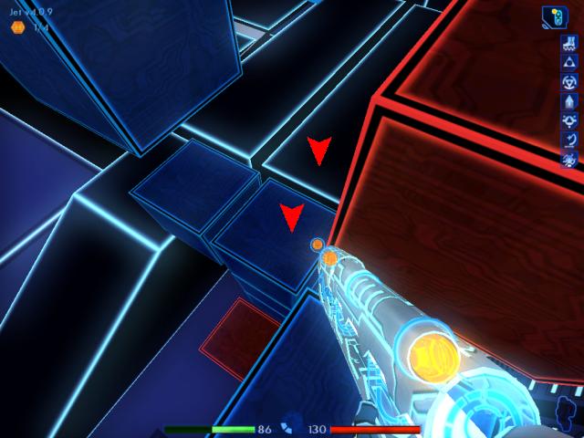 When you reach the top, quick save your game. Jump across to the block on the left, then jump on the block to the right indicated by the arrow.