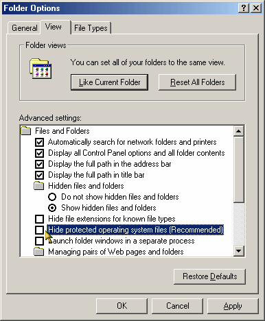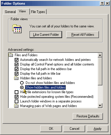 - In Windows 98/Me go to the folder C:\WINDOWS\Temp. In 2000/XP go to C:\Documents and Settings\User Account\Local Settings\Temp, where User Account is the name of the account you logged in with. Make sure your hidden and system files are set to be shown. If not, follow the instructions above.