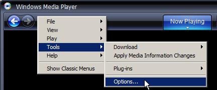 - Right click in the top or bottom bar of Media Player, and choose Options.