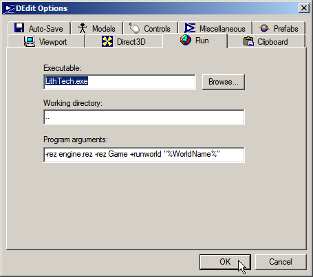 Edit the Program arguments field to read -rez engine.rez -rez x:\YourTronDir\Game +runworld "%WorldName%" +errorlog 1 +alwaysflushlog 1 or -rez engine.rez -rez C:\Program Files\Buena Vista Interactive\Tron 2.0\Game +runworld "%WorldName%" +errorlog 1 +alwaysflushlog 1.